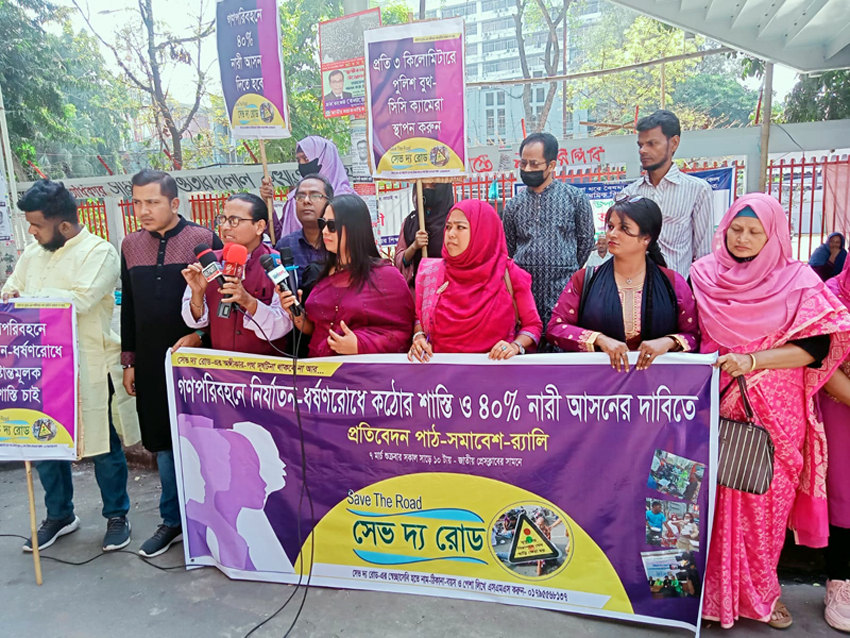 ইউনিভার্সেল নিউজ : ২০২৪ সালের মার্চ থেকে ২০২৫ সালের ফেব্রুয়ারি পর্যন্ত গত ১ বছরে রেল, নৌ ও সড়কপথের পাশাপাশি রেল-নৌ-বাস স্টেশন এবং ফুটপাতে নারী শ্লীলতাহানি-নির্যাতনের ঘটনা ঘটেছে ১ হাজার ৭৫৮ এবং ধর্ষিত হয়েছেন ৪১ জন নারী। আন্তর্জাতিক নারী দিবসকে কেন্দ্র করে সেভ দ্য রোড-এর উদ্যোগে গণপরিবহনে নির্যাতন-ধর্ষণরোধে কঠোর শাস্তি ও ৪০% নারী আসনের দাবিতে প্রতিবেদন পাঠ-সমাবেশ ও র্যালি থেকে এই তথ্য দিয়েছেন সংগঠনটির মহাসচিব শান্তা ফারজানা।