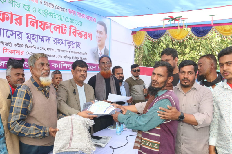 অনুষ্ঠান শেষে বরিশাল সদর উপজেলার চৌমাথা বাজার কাশিপুর ইউনিয়ন বিএনপির কার্যালয় সংলগ্ন মাঠে কাশিপুর ইউনিয়নের ৯ টি ওয়ার্ডের ৩৫০ জন গরীব অসহায় মানুষের মাঝে শীতবস্ত্র বিতরণ করা হয়।
