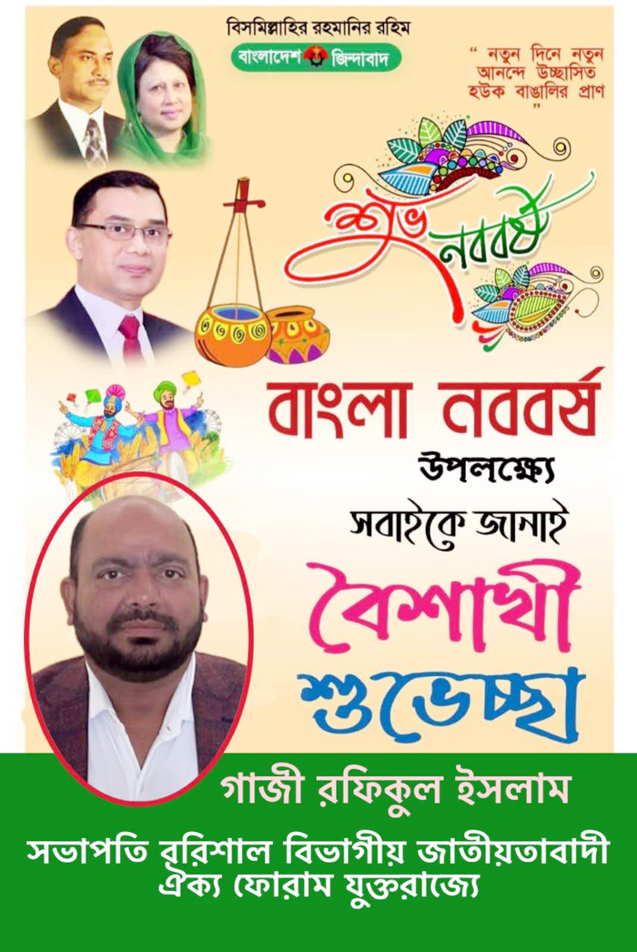 ইউনিভার্সেল নিউজ : যুক্তরাজ্য জাতীয়তাবাদী ঐক্য ফোরামের বরিশাল বিভাগীয় কমিটির সভাপতি গাজী রফিকুল ইসলাম দেশবাসীকে বাংলা নববর্ষ ১৪৩২-র শুভেচ্ছা ও অভিনন্দন জানিয়েছেন। এক বার্তায় তিনি বলেছেন, বাঙালির হৃদয়ে প্রকৃতি এক অদৃশ্য সুরে বাঁধা। ষড়ঋতুর লীলাভূমিতে ঝড়-বৃষ্টির দামামা বাজিয়ে, ধূলাবালির মেঘ উড়িয়ে, বজ্রের গর্জনে কাঁপিয়ে পহেলা বৈশাখ আসে এক নবজাগরণের প্রতীক হয়ে। এবার নতুন বছর এলো এক নতুন ভোরের বার্তা নিয়ে। অন্যায়ের বিরুদ্ধে বিজয়ের অন্যরকম এক আবহেই এলো এবারের পহেলা বৈশাখ।