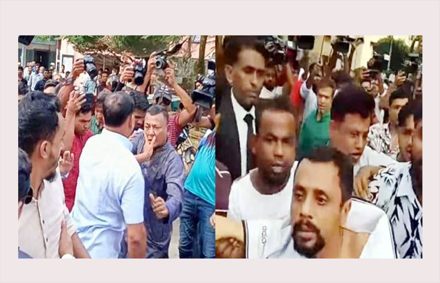 ইউনিভার্সেল নিউজ : বরিশাল আদালত চত্বরে আওয়ামী লীগ নেতা শাহরিয়ার রাজীব ও কাউন্সিলর জয়নাল আবেদীন মারধরের শিকার হয়েছেন। সোমবার (২৩ সেপ্টেম্বর) বিএনপি সমর্থকরা এদেরকে মারধর করেছেন বিক্ষুদ্ধ জনতা। উল্লেখ্য, রোববার সন্ধ্যায় রাজধানীর বারিধারা থেকে বরিশাল-৫ আসনের সাবেক সংসদ সদস্য জাহিদ ফারুক শামিমকে গ্রেপ্তার করে র্যাব। গত ৪ আগস্ট বরিশাল নগর বিএনপি কার্যালয়ে হামলার ঘটনায় বরিশাল কোতোয়ালি মডেল থানায় দায়ের করা একটি মামলার প্রধান আসামি হিসেবে তাকে গ্রেপ্তার করা হয়।